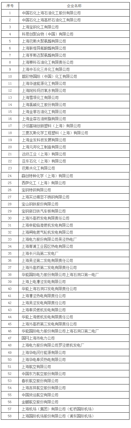 本市納入國家2016、2017年度碳排放報告與核查及排放監(jiān)測計劃制定工作的重點排放企業(yè)名單