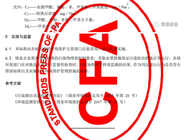 2017年7月31日,由中國鑄造協(xié)會發(fā)布的T/CFA030802-2—2017《鑄造行業(yè)大氣污染物排放限值》(中國鑄造協(xié)會標(biāo)準(zhǔn)公告 2017年 第06號)發(fā)布。該標(biāo)準(zhǔn)于2017年10月1日起實施。