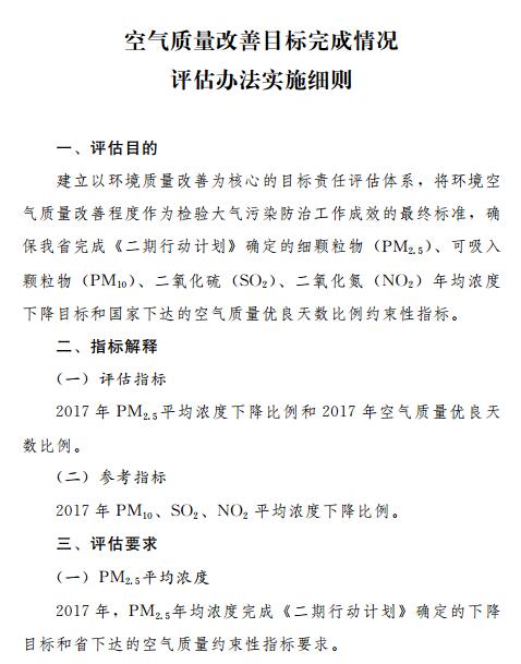 第十一條具體評估指標由省環(huán)保廳會同有關部門按照國家和省委、省政府工作部署適時進行調整。《二期行動計劃》完成后,所涉及評估內容順推為《三期行動計劃》確定的內容,以此類推。