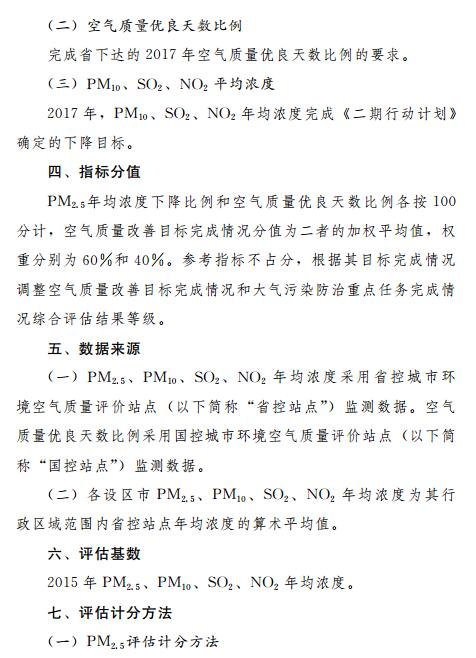 第二條本辦法適用于對我省各設區(qū)市人民政府(以下簡稱“各市政府”)大氣污染防治目標任務完成情況的評估。