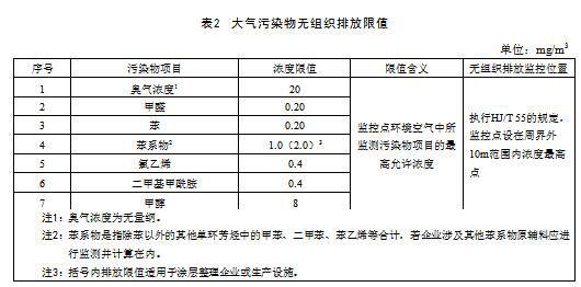 (2)自本標(biāo)準(zhǔn)實(shí)施之日起,紡織染整企業(yè)大氣污染物無(wú)組織排放監(jiān)控點(diǎn)濃度限值應(yīng)符合表2規(guī)定。