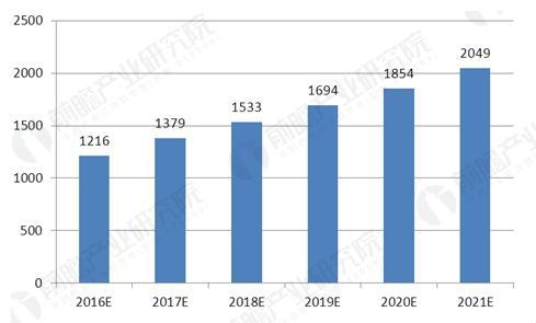 2016-2021年中國(guó)合同能源管理行業(yè)投資規(guī)模預(yù)測(cè)圖(單位:億元)