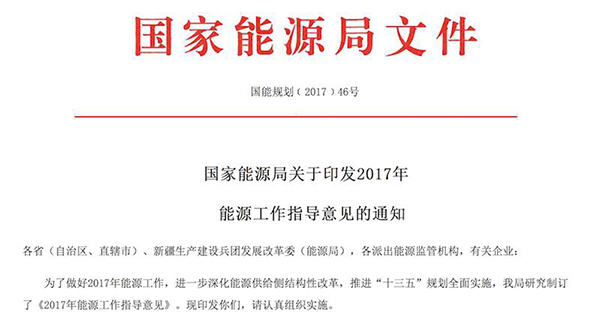 為了更好的做好完成2017年能源工作,近日,國(guó)家能源局研究制訂了《2017年能源工作指導(dǎo)意見(jiàn)》(簡(jiǎn)稱(chēng)意見(jiàn))。