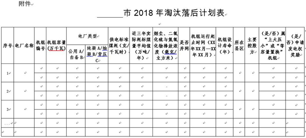 二、嚴(yán)格執(zhí)行國(guó)家及我省制定的煤電淘汰落后標(biāo)準(zhǔn),結(jié)合各市前期統(tǒng)計(jì)的“十三五”期間淘汰機(jī)組的摸底情況,對(duì)轄區(qū)內(nèi)煤電機(jī)組進(jìn)行嚴(yán)格篩查,根據(jù)篩查情況認(rèn)真填報(bào)《 ? ?市2018年淘汰落后計(jì)劃表》,報(bào)送計(jì)劃中要說(shuō)明列入淘汰計(jì)劃?rùn)C(jī)組是否申請(qǐng)發(fā)電權(quán)獎(jiǎng)勵(lì)。于2018年1月底前將本市2018年電力行業(yè)淘汰落后計(jì)劃以正式文件報(bào)省經(jīng)信委。