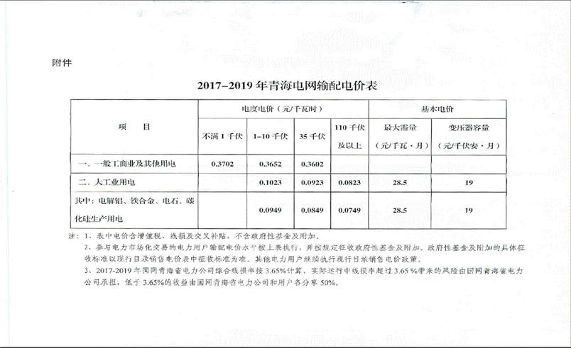 一、青海電網(wǎng)首個(gè)監(jiān)管周期(2017年1月1日-2019年12月31日)分電壓等級(jí)輸配電價(jià)標(biāo)準(zhǔn)詳見(jiàn)附件。