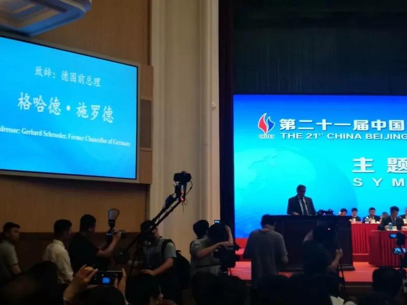 這次報告會上,科技部黨組成員夏鳴九,北京市副市長、科博會組委會副主席殷勇,德國前總理格哈德·施羅德分別致辭。