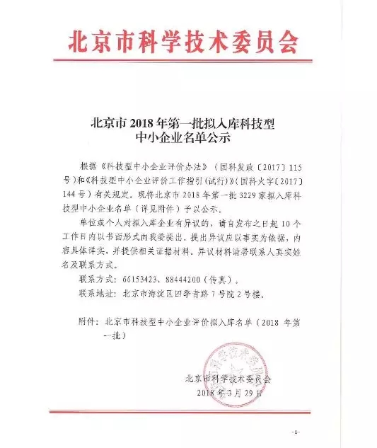 近日,北京市科技技術(shù)委員會公示了北京市2018年第一批擬入庫科技型中小企業(yè)名單。其中,中科宇杰以其自主研發(fā)的核心技術(shù)實力,穩(wěn)定的產(chǎn)品品質(zhì),良好的售后服務(wù),誠實的公司信譽,成功榮獲該項榮譽??!