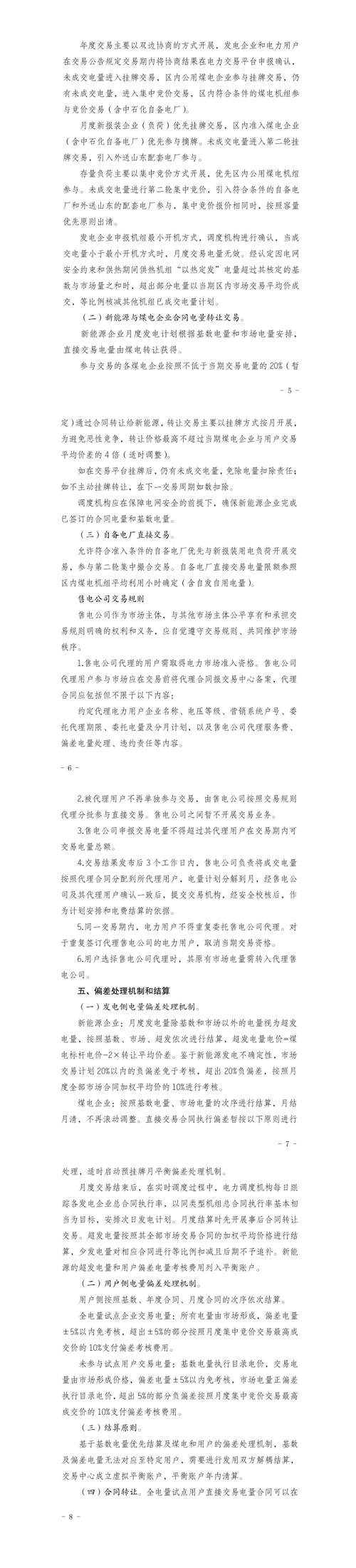 煤電企業(yè):超發(fā)電量按照其全部市場(chǎng)交易合同的加權(quán)平均價(jià)格進(jìn)行結(jié)算,少發(fā)電量對(duì)相應(yīng)合同進(jìn)行等比例扣減且后期不予追補(bǔ)。