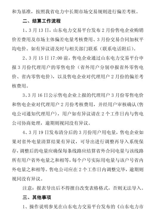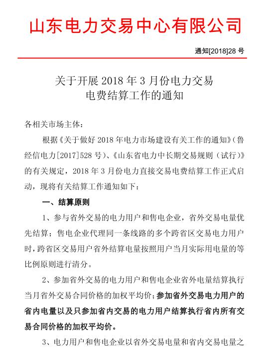 日前,山東電力交易中心發(fā)布《關(guān)于開(kāi)展2018奶奶3月份電力交易電費(fèi)結(jié)算工作的通知》(以下簡(jiǎn)稱“通知”)。通知中稱,參與省外交易的電力用戶和售電企業(yè),省外交易電量?jī)?yōu)先結(jié)算。參加省外交易電力用戶的省內(nèi)電量以及只參加省內(nèi)交易的電力用戶結(jié)算執(zhí)行省內(nèi)所有交易合同價(jià)格的加權(quán)平均價(jià)。詳情如下: