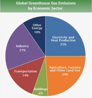 發(fā)電(25%),交通(14%),工業(yè)部門(21%)和建筑(6%)是碳排放的4個(gè)主要來源。