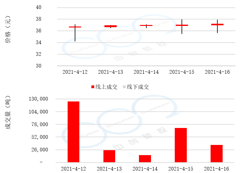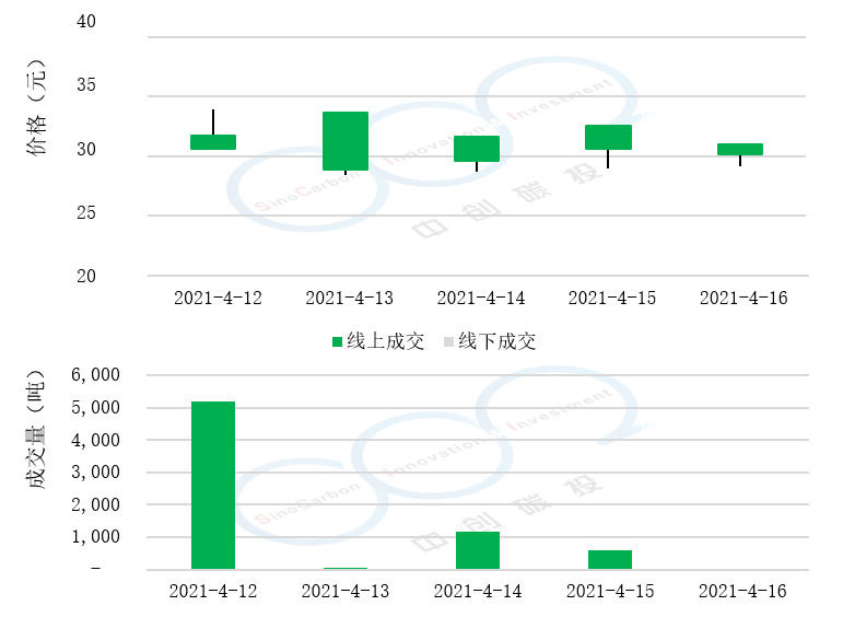 線上成交價(jià)最低為27.00元,最高為28.00元,平均碳價(jià)為27.50元。