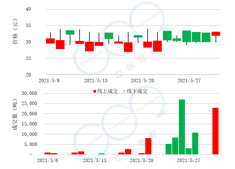 - 線上成交價(jià)最低為27.00元,最高為29.80元,平均碳價(jià)為29.00元。