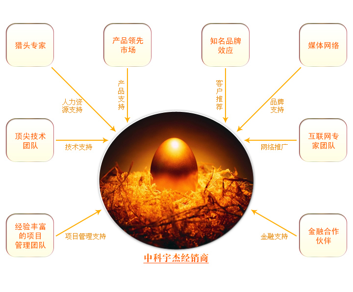 中科宇杰憑著多年的行業(yè)運作積累和500多個節(jié)能項目管理經(jīng)驗,結(jié)合節(jié)能行業(yè)的現(xiàn)狀,創(chuàng)造性地提出“節(jié)能商學(xué)院”式的渠道發(fā)展政策,綜合性地為全國有志于投身節(jié)能事業(yè)的企業(yè)、人士提供一個節(jié)能行業(yè)企業(yè)的“孵化器”平臺。此平臺不但在渠道的政策方面,給予經(jīng)銷商靈活的操作方式,充分發(fā)揮不同類型經(jīng)銷商的優(yōu)勢和長處,還為經(jīng)銷商提供行業(yè)資訊、技術(shù)培訓(xùn)、商務(wù)操作、投融資、人力資源、客戶資源、互聯(lián)網(wǎng)支持等方面給予強(qiáng)有力的支持,讓你的投資不但有經(jīng)濟(jì)收益,還能在企業(yè)經(jīng)營方面得到諸多的收益。中科宇杰不但自己做大做強(qiáng),也幫助我們的合作者成長,共同成為節(jié)能行業(yè)的翹楚。