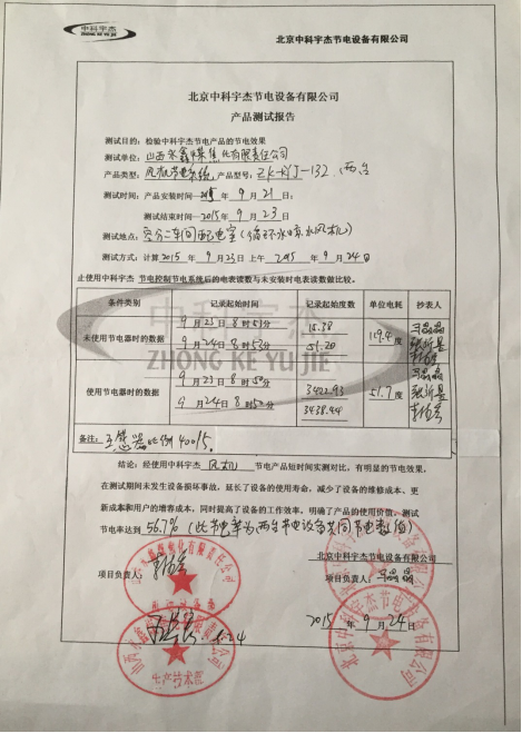 經(jīng)過山西永鑫管理人員的嚴格審核,中科宇杰智能風機節(jié)電系統(tǒng)的節(jié)能效率達到了56.7%,遠遠超過了企業(yè)的預期,山西永鑫的管理人員對中科宇杰的工程人員表示感謝和贊揚。在要求如此嚴格的情況下,中科宇杰仍然能設計出如此高效能的節(jié)能系統(tǒng),獲得很好的經(jīng)濟效益。