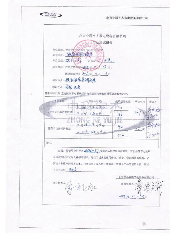 安裝調(diào)試并驗(yàn)收后,通過現(xiàn)場(chǎng)讀表,顯示節(jié)電達(dá)到34%,節(jié)電效果明顯。按質(zhì)保十年計(jì)算,此項(xiàng)節(jié)能工程能為榆林市銀杏國際酒店帶來四百萬以上人民幣的直接經(jīng)濟(jì)效益。