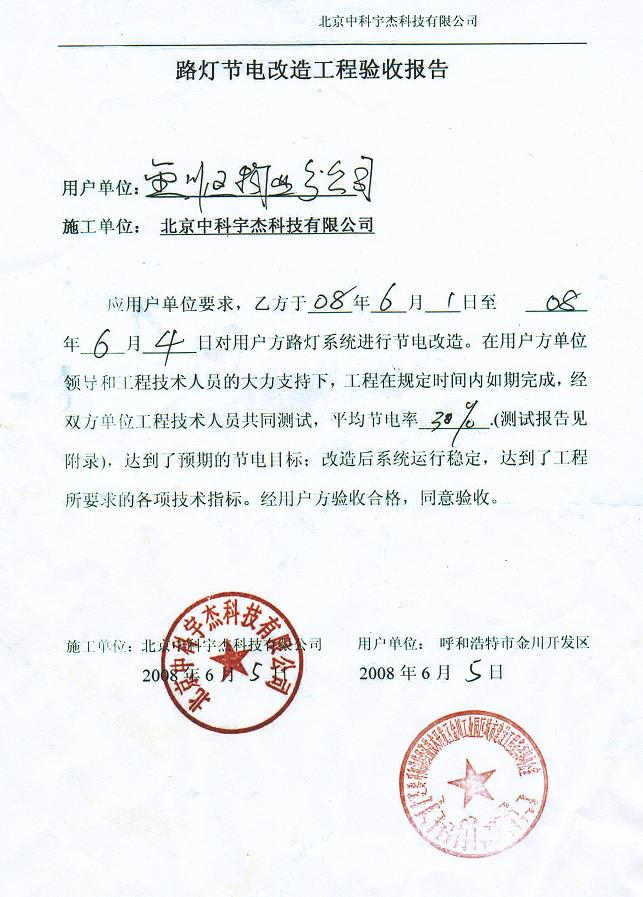 呼和浩特經(jīng)濟(jì)技術(shù)開發(fā)區(qū)金川工業(yè)園區(qū)地處呼和浩特——包頭——鄂爾多斯資源富集的金三角區(qū)域,是連接呼包兩市工業(yè)走廊的橋頭堡,也是連接京、津、唐與西北地區(qū)以及蒙古和俄羅斯的重要中轉(zhuǎn)站,于1992年8月8日奠基成立,2000年7月2日經(jīng)國(guó)務(wù)院批準(zhǔn)為國(guó)家級(jí)經(jīng)濟(jì)技術(shù)開發(fā)區(qū),批準(zhǔn)規(guī)劃面積6平方公里。開發(fā)區(qū)響應(yīng)國(guó)家的號(hào)召,在“十一五”期間,對(duì)節(jié)能減排工作不遺余力,于2008年邀請(qǐng)中科宇杰公司對(duì)其路燈系統(tǒng)進(jìn)行節(jié)能改造。