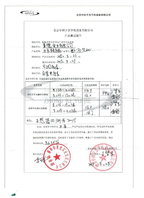 工程竣工后,通過現(xiàn)場讀表,節(jié)電達到36.36%,效果明顯。改造工程一方面降低了用電量,減少了電費支出,另一方面保護了節(jié)能設(shè)備,延長設(shè)備壽命,減少維護成本。